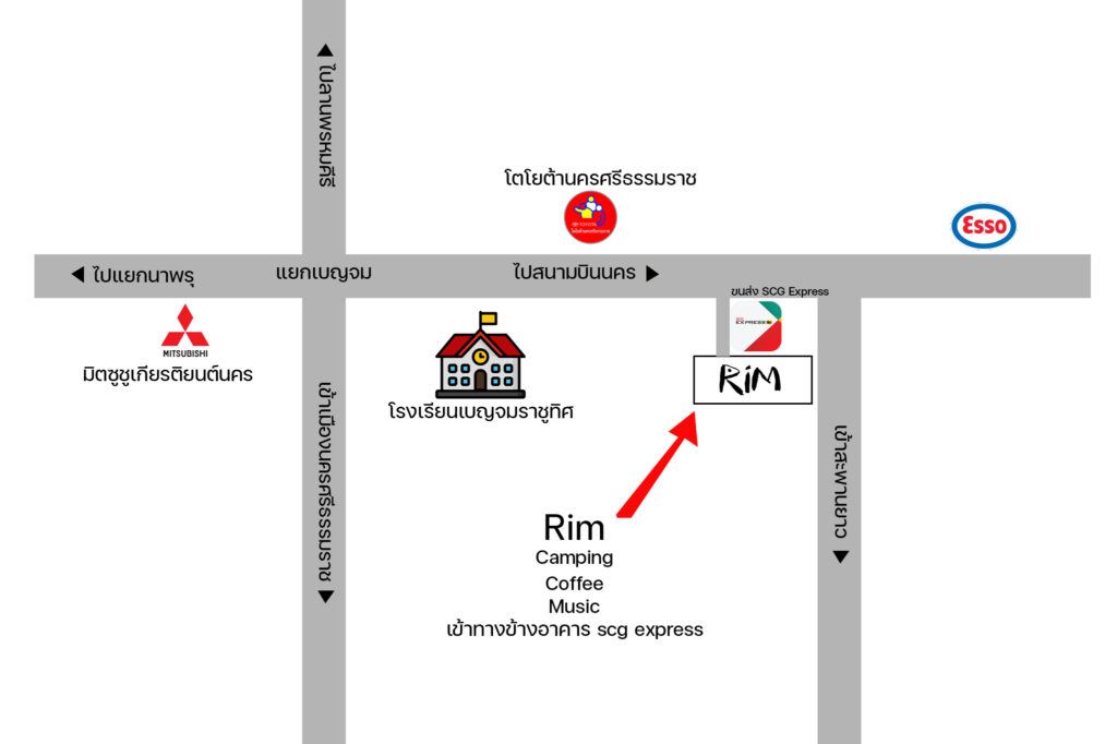 Rim หาไม่ยากมากนัก ใกล้ๆกับโรงเรียนเบญจมราชูทิศนครศรีธรรมราชนี่แหละครับ เลยมาเพียง 500 เมตร ตั้งอยู่ด้านหลังของอาคาร SCG Express ซึ่งเป็นบริษัทขนส่ง เลี้ยวเข้าทางริมตึกได้เลย .